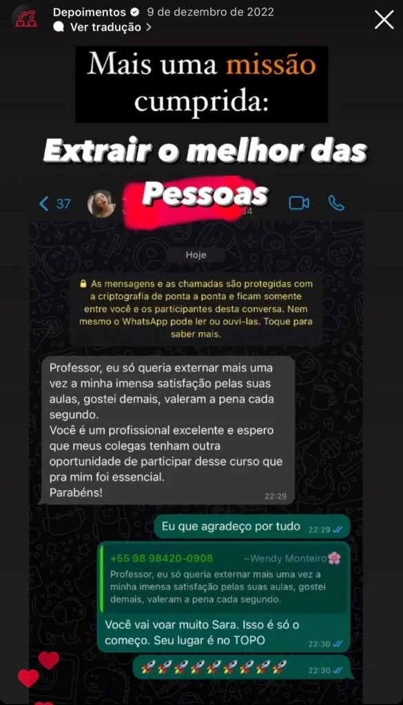 “Acabamos de assistir a palestra com o Nestor Xavier. Foi sensacional, uma experiência incrível”