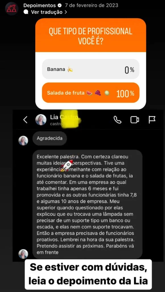 “Foi uma aula para toda a vida! Para ser aplicada no ambiente pessoal e profissional. A Soft Skills é super importante. Foi um show para a vida”